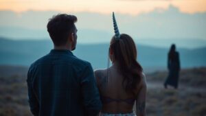 Polyamorous couple and a unicorn horn.